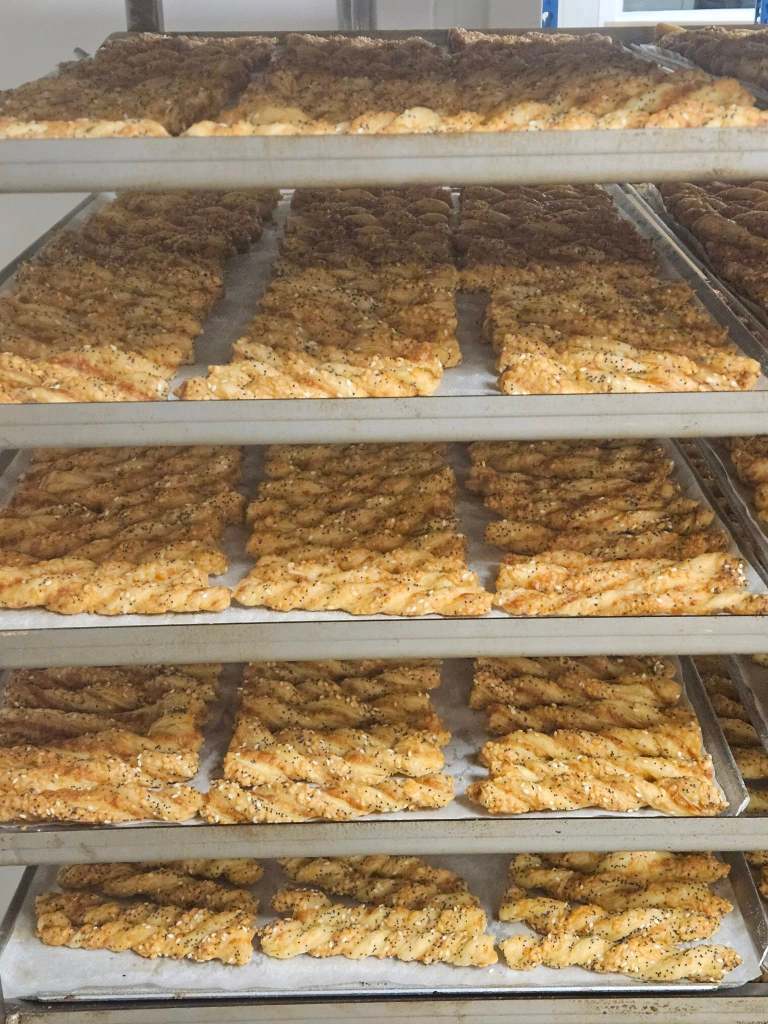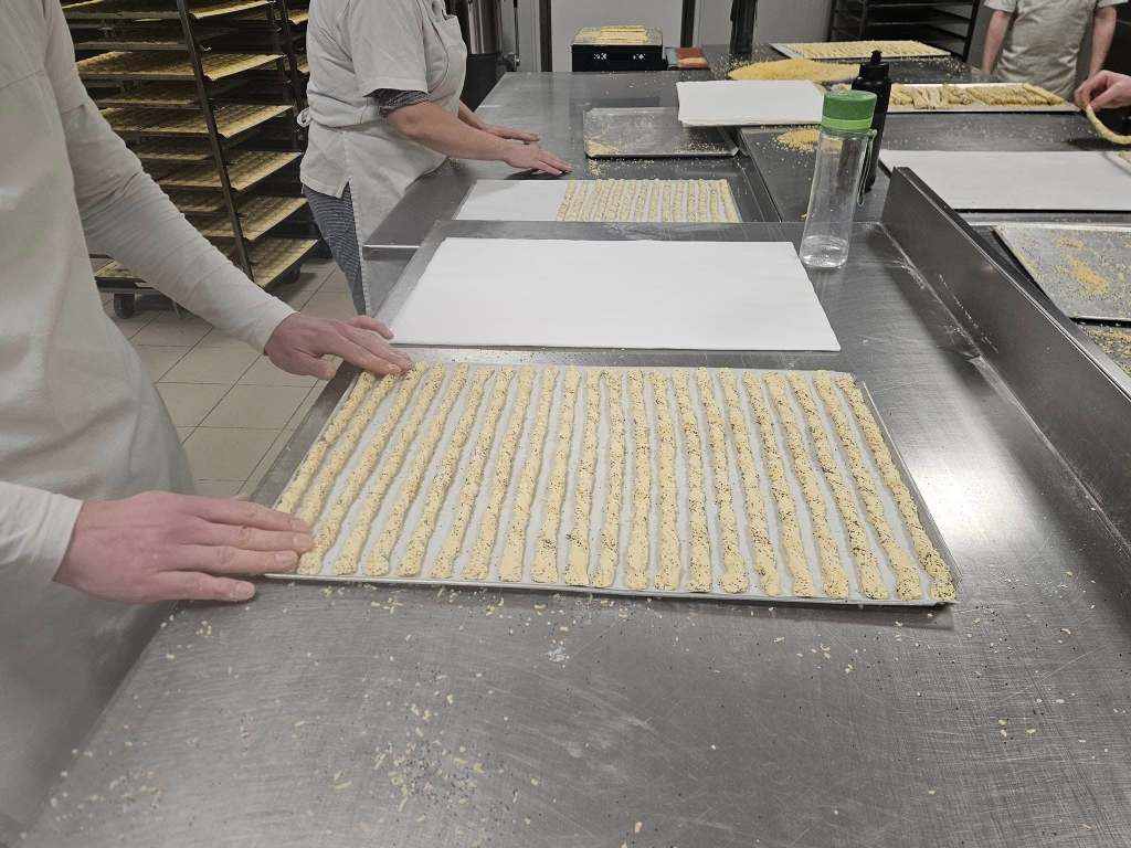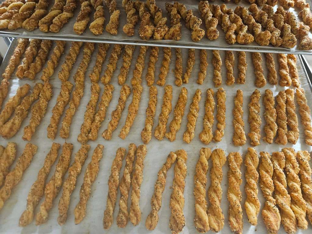 Vandaag ook weer volop kaasstengels aan het twisten! Nu al weken één van de dagelijkse werkzaamheden en 100% handwerk! Het einde van de Kerstdrukte is in zicht, nog 3 dagen te gaan!